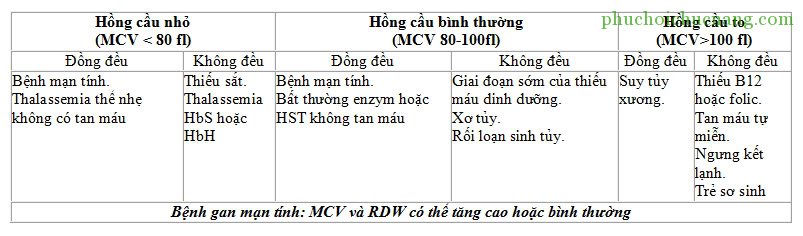 - RDW >14% : Hồng cầu to nhỏ không đều
